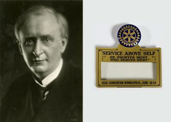 ロータリーは、一人のアメリカ人のビジョンによって始まりました。その人の名は、ポール・ハリス。シカゴで弁護士として働いていたハリスが、世界初のロータリークラブ(シカゴ・ロータリークラブ)を設立したのは、1905年2月23日。さまざまな分野の職業人が集まって知恵を寄せ合い、生涯にわたる友情を培うことのできる場をつくることが、ハリスの夢でした。